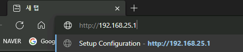 7. 인터넷 브라우저 주소창에 http://192.168.25.1 를 입력하고 접속해줍시다.