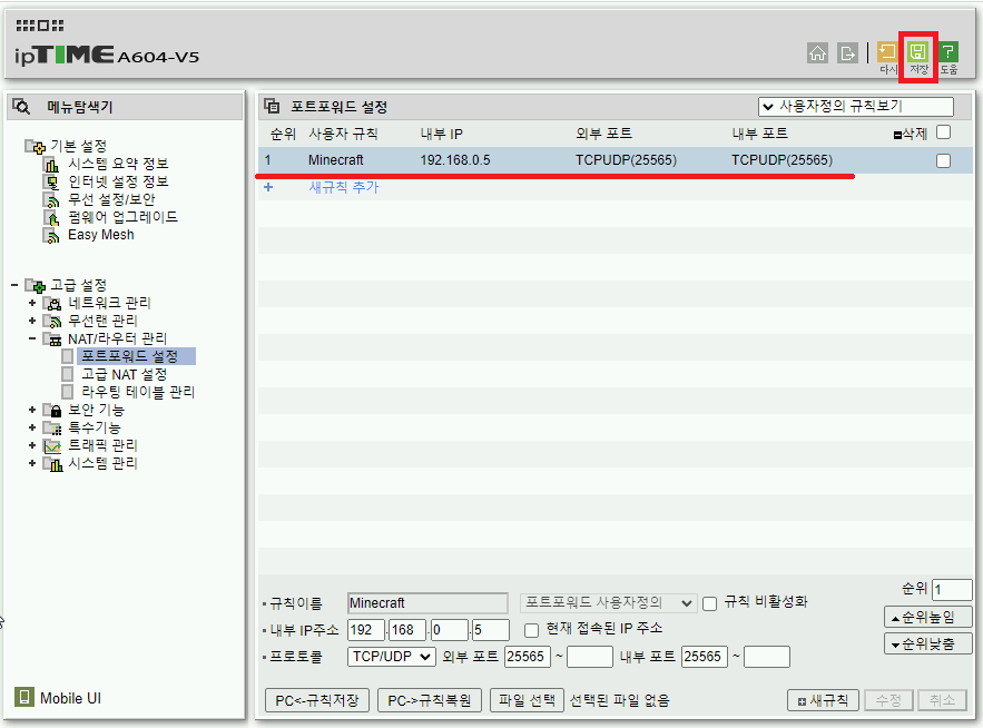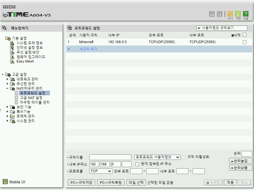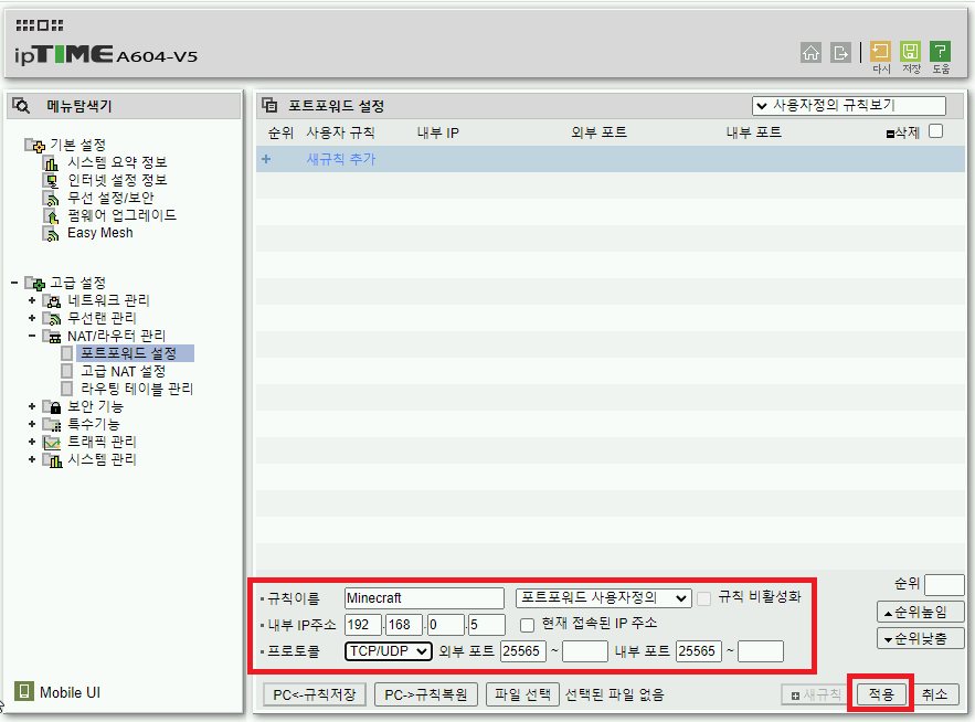 IPTIME A604-V5 유무선 공유기 포트포워딩을 해보자