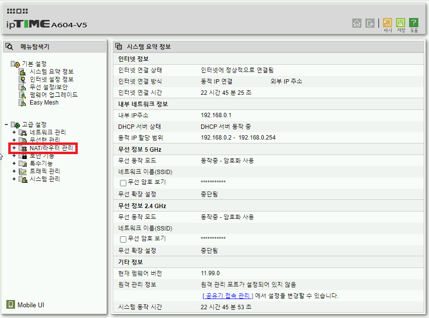 NAT/라우터 관리를 눌러 메뉴를 또 펼쳐줍니다.