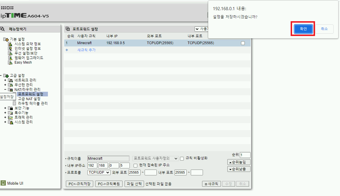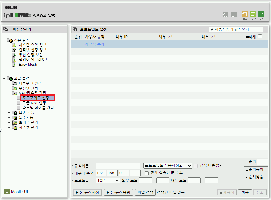 아이피타임 A604-V5 유무선 공유기 포트포워딩 하는법