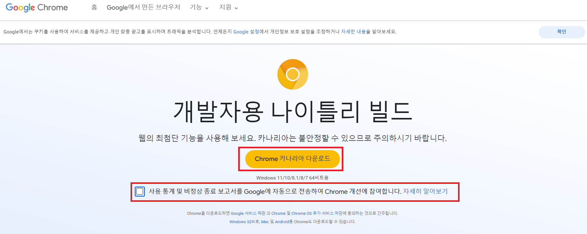 https://www.google.com/intl/ko/chrome/canary/