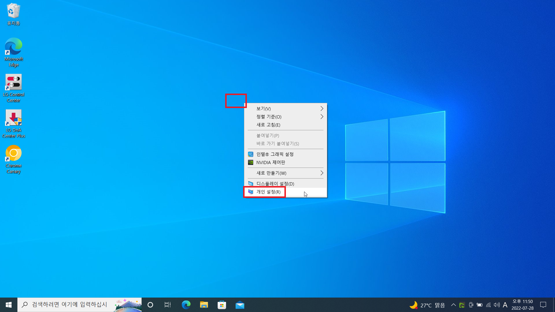 1. 바탕화면 빈 곳에 마우스 우클릭 해줍시다.