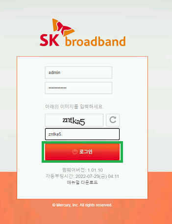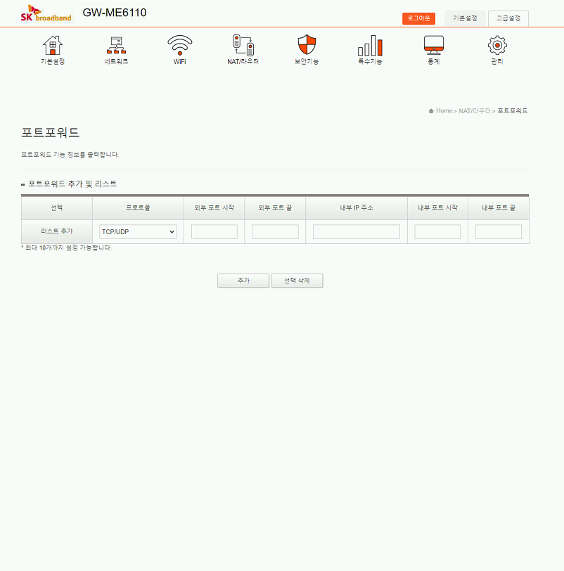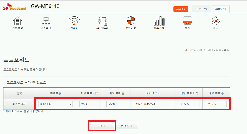 SKB 머큐리 GW-ME6110 유무선 공유기 포트포워딩 하는 법