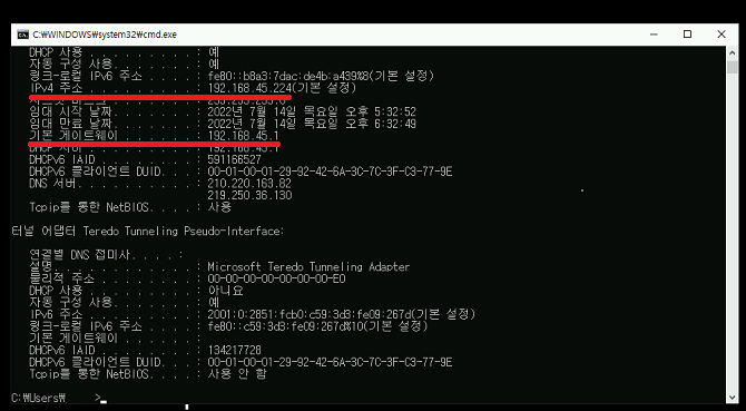 4. ipconfig /all 명령어를 입력하시고 엔터키를 눌러주세요.