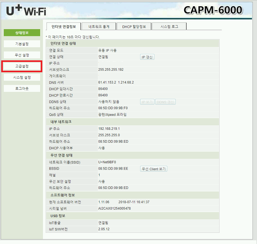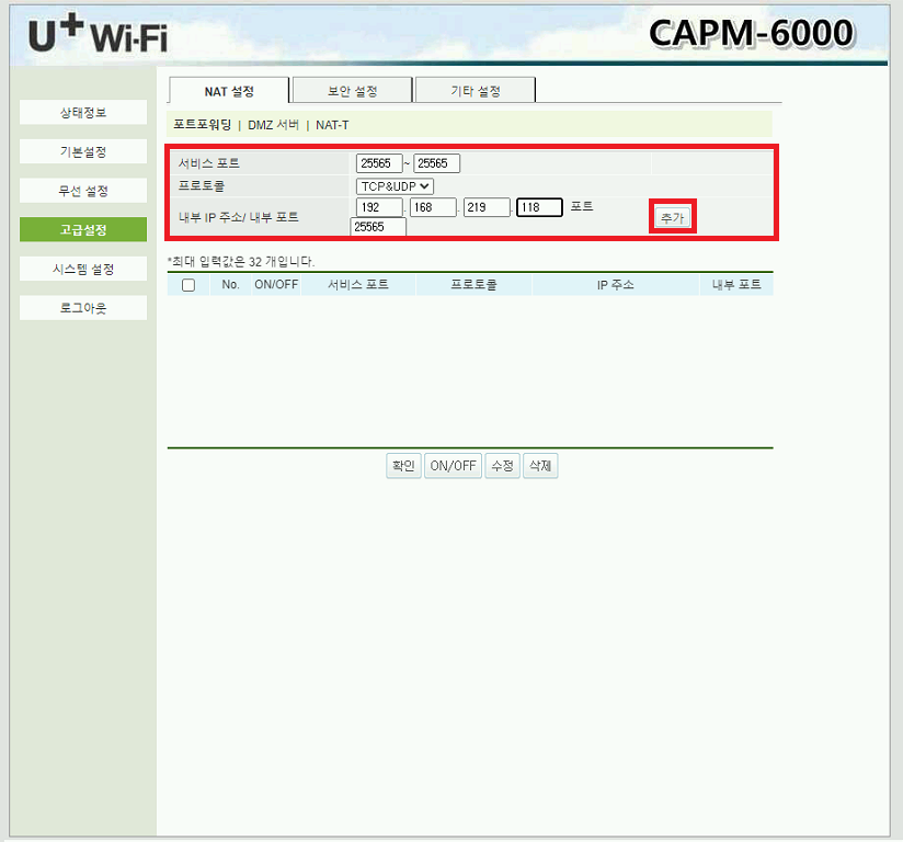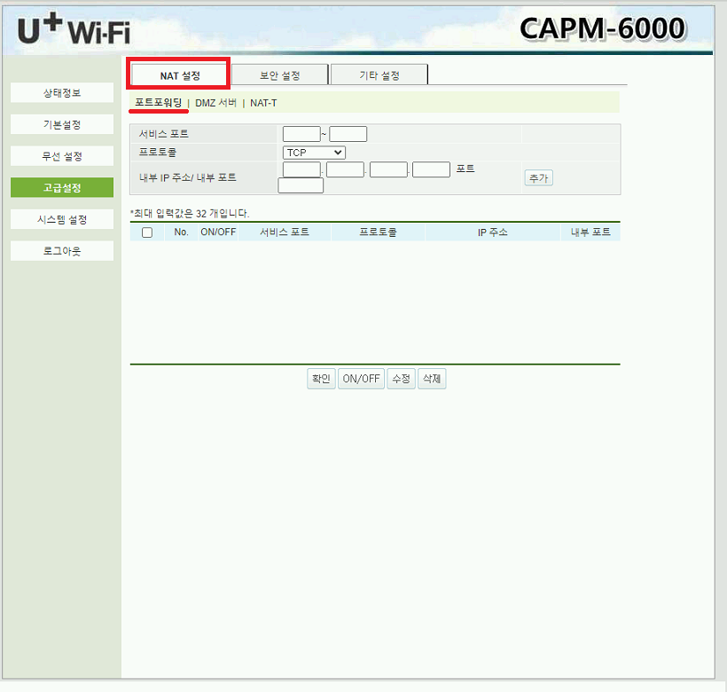 LGU+ Mercury CAPM-6000 유무선공유기 포트포워딩 하는 법