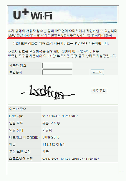 LG 유플러스 납품용 Mercury 사의 CAPM-6000 유무선 공유기를 포트포워딩해보겠습니다.