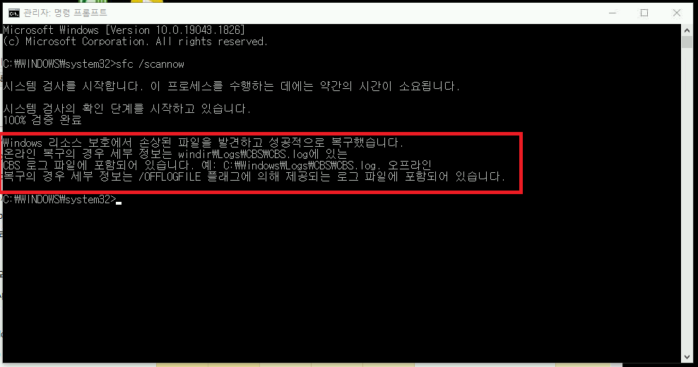 윈도우10 SFC /SCANNOW 명령어로 윈도우 손상 복구 하기
