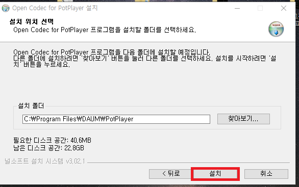 24. 코덱이 설치될 위치를 지정합니다.