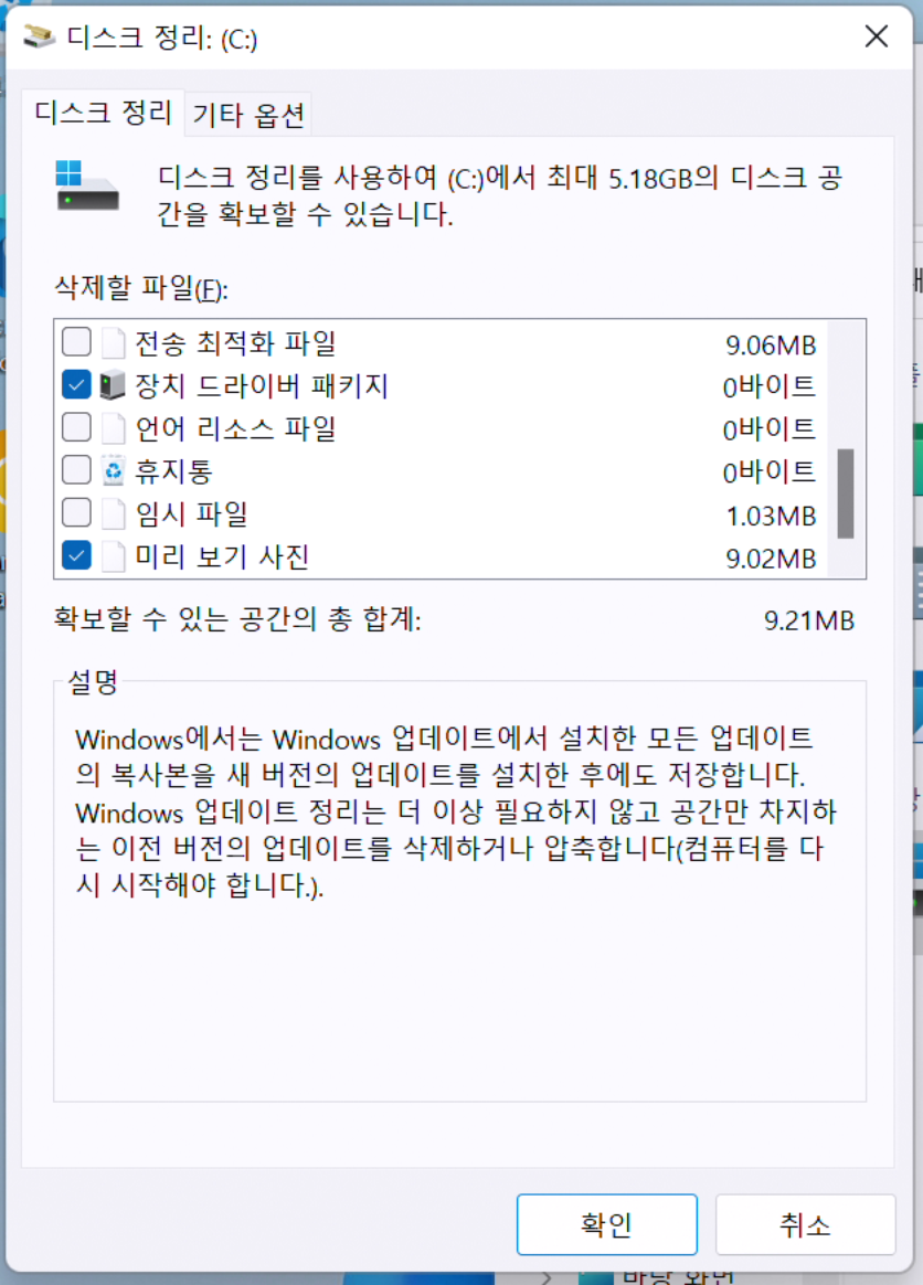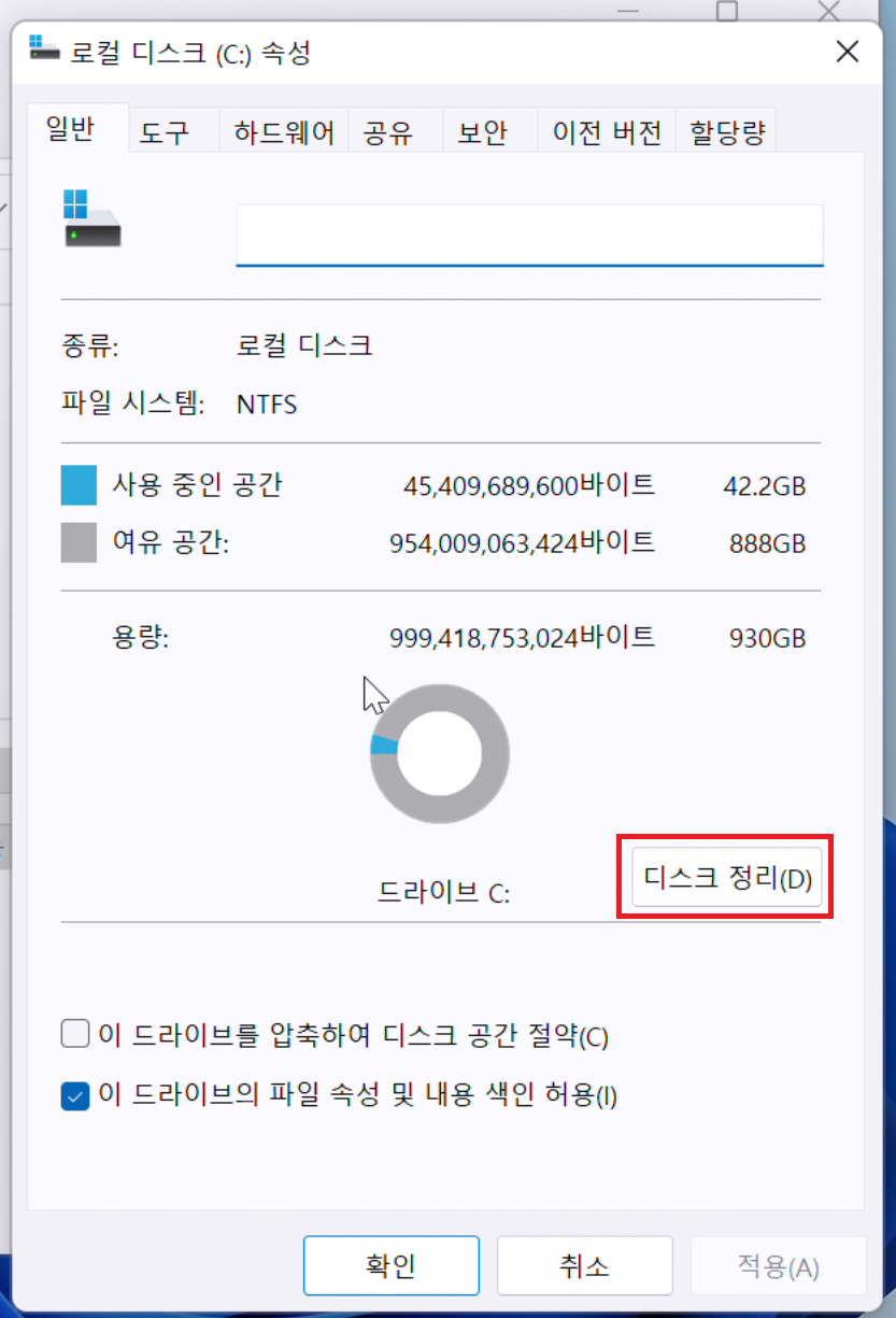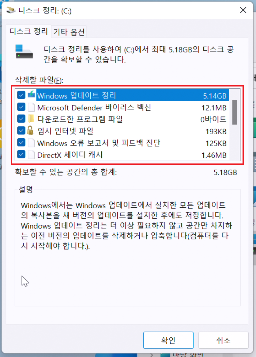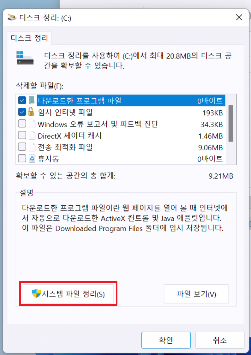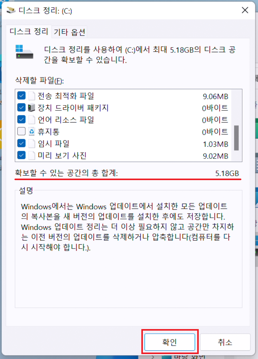 윈도우11에서 디스크 정리 도구를 사용하여 C드라이브 용량을 확보해보자
