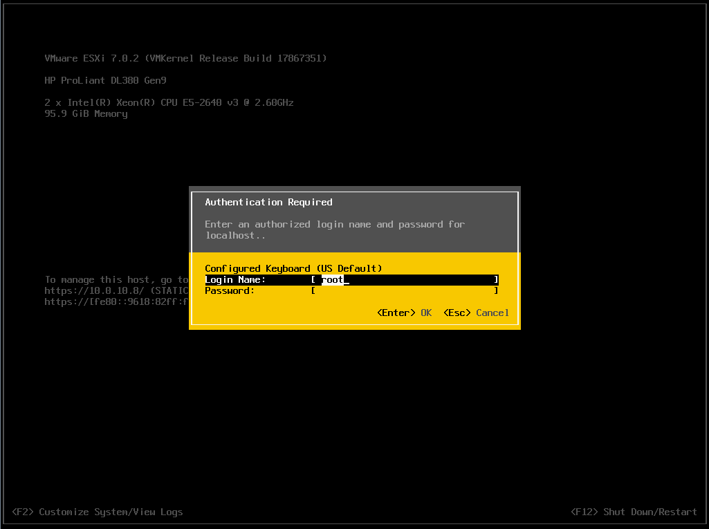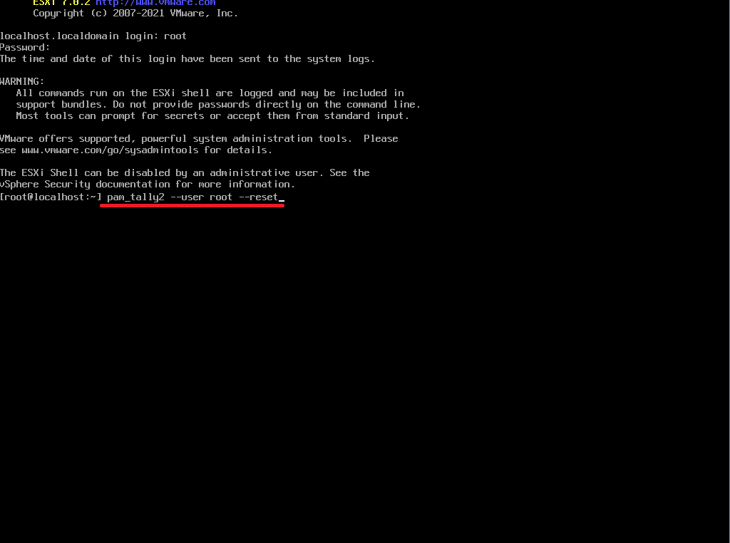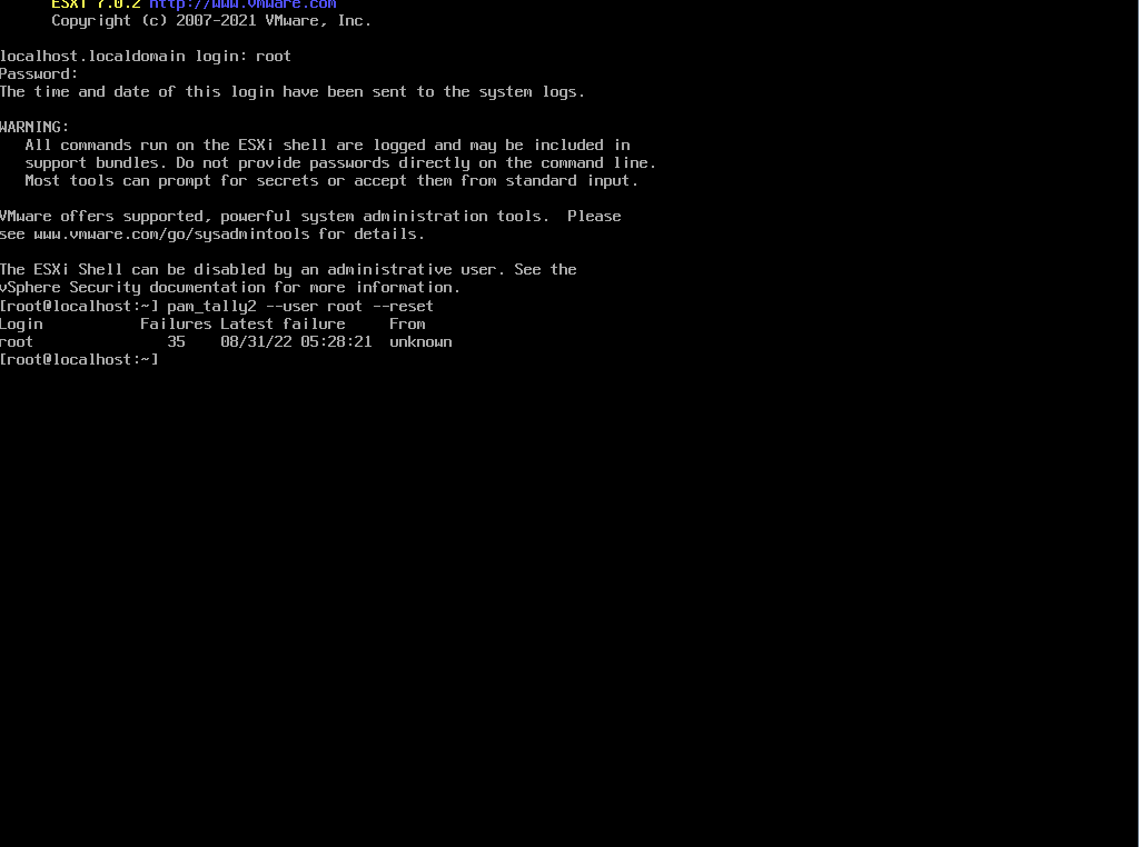 ESXI7 콘솔에서 CLI 명령어로 root 계정 잠금 해제하기