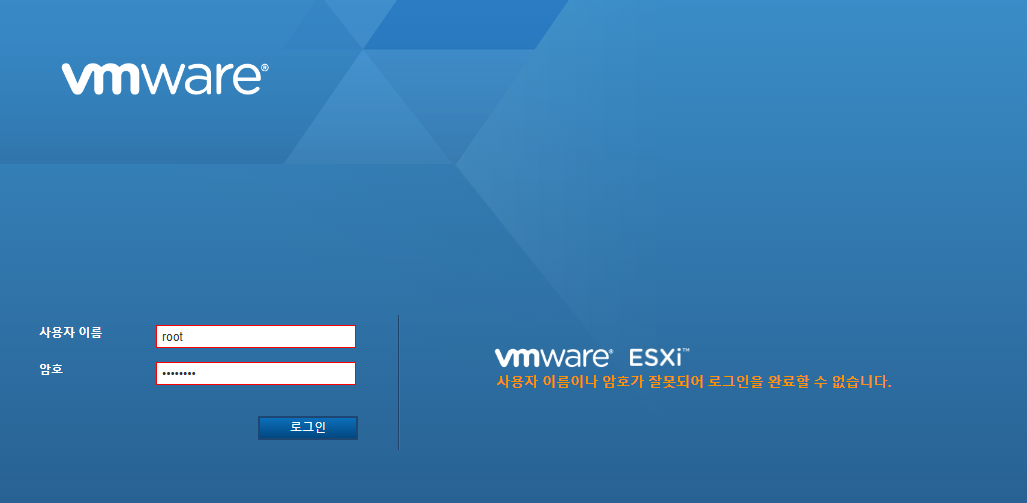 분명 비밀번호는 맞는데 VMWARE ESXI7 Web Client에서 접속이 안 됩니다.