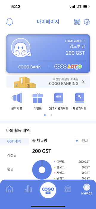 35. 마이페이지로 들어오면 위와 같이 회원정보와 보유 GST를 확인할 수 있습니다.