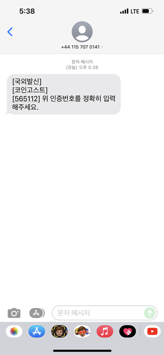 메세지는 해외 문자로 오기 때문에 혹시나 해외 문자 차단이 걸려있으면
