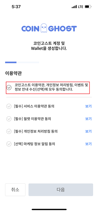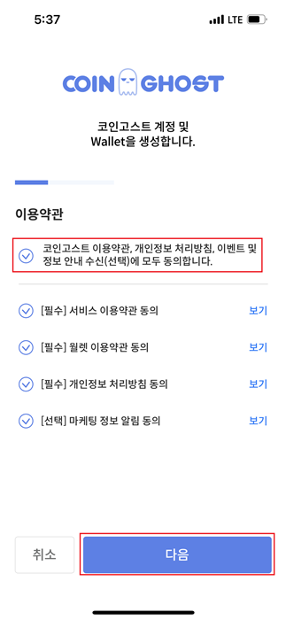 코인고스트 시작하기 버튼을 눌러 다음 단계로 진행해줍시다.