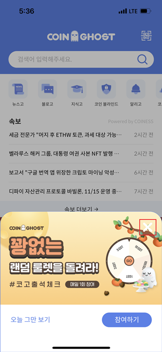 룰렛은 X 표시를 눌러 닫아줍시다.