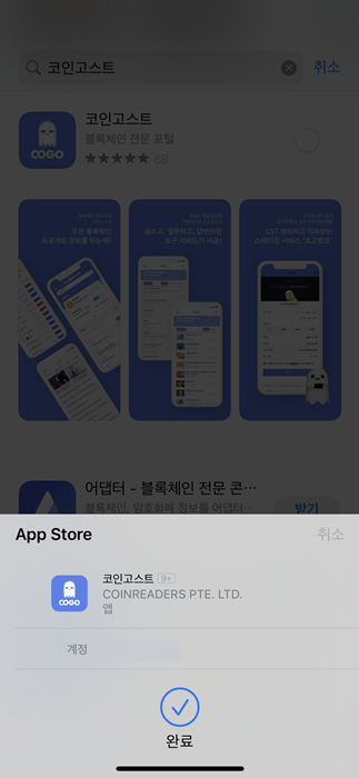 유령 모양의 COGO 아이콘이 달린 어플을 찾아 받기 버튼을 눌러 다운로드를 받아줍시다.