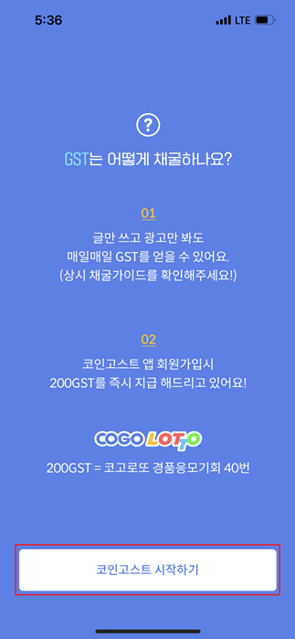 지금은 APP으로 회원가입 시 이벤트로 200GST를 지급해주고 있어서