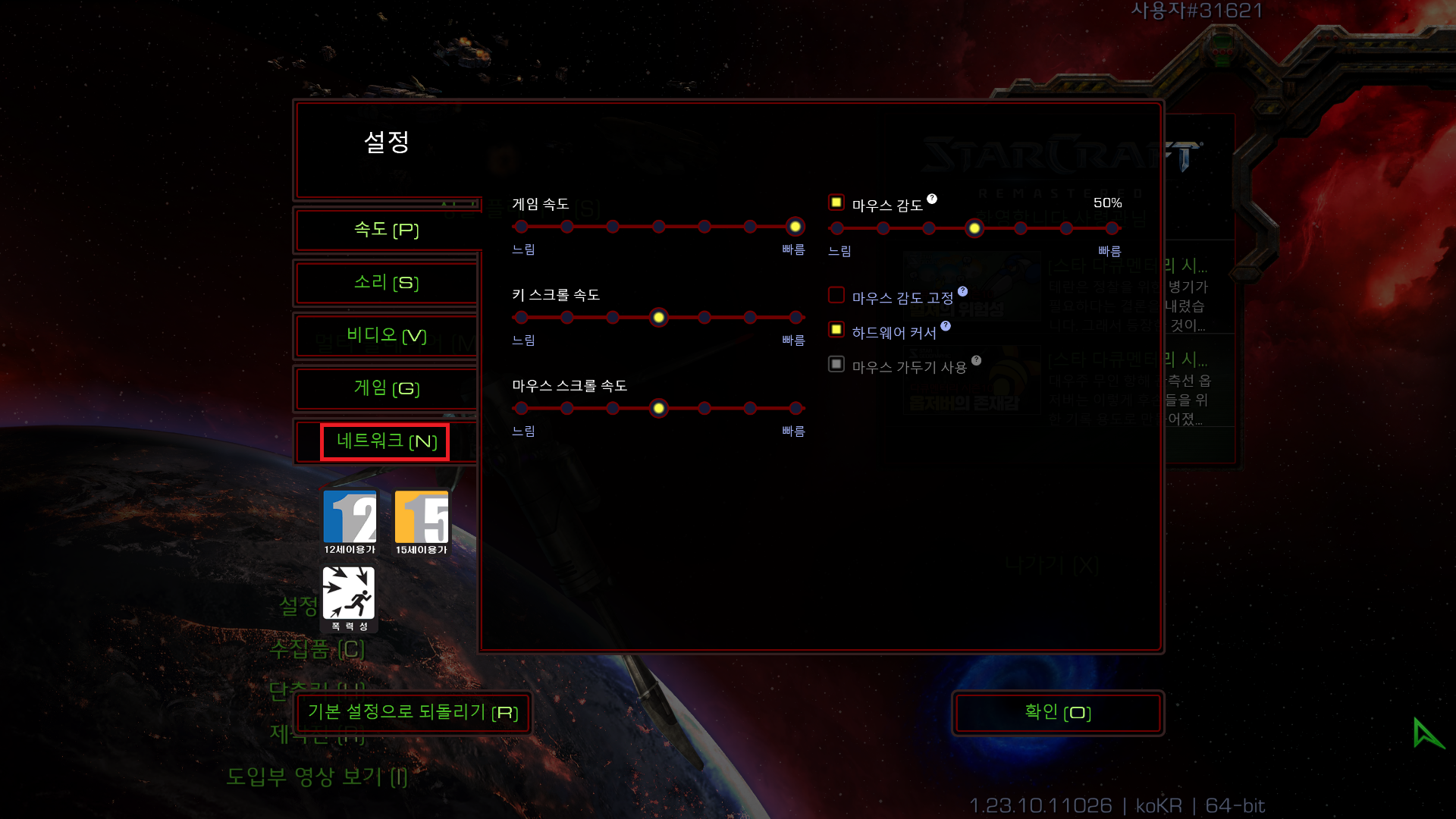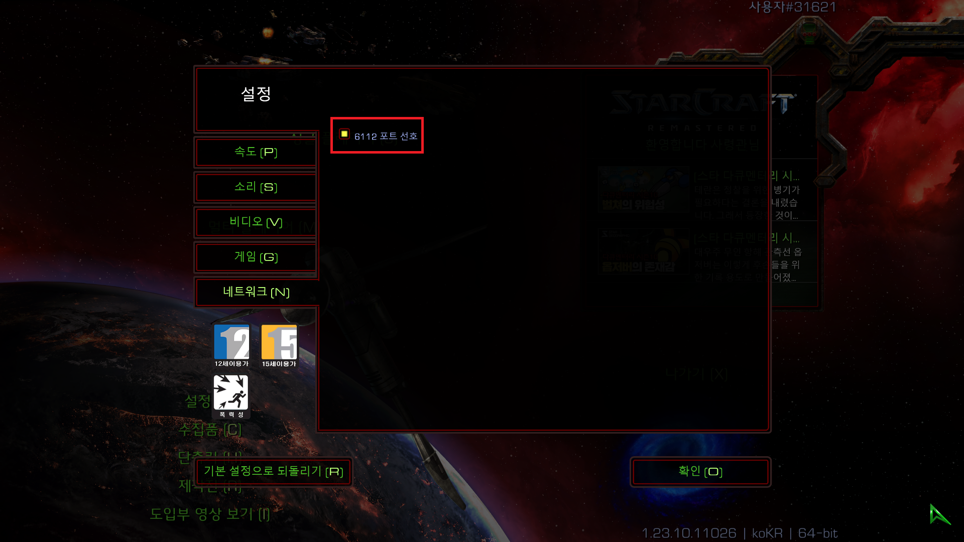 22. 스타크래프트를 실행하면 위와 같이 설정 메뉴가 있으실텐데요.