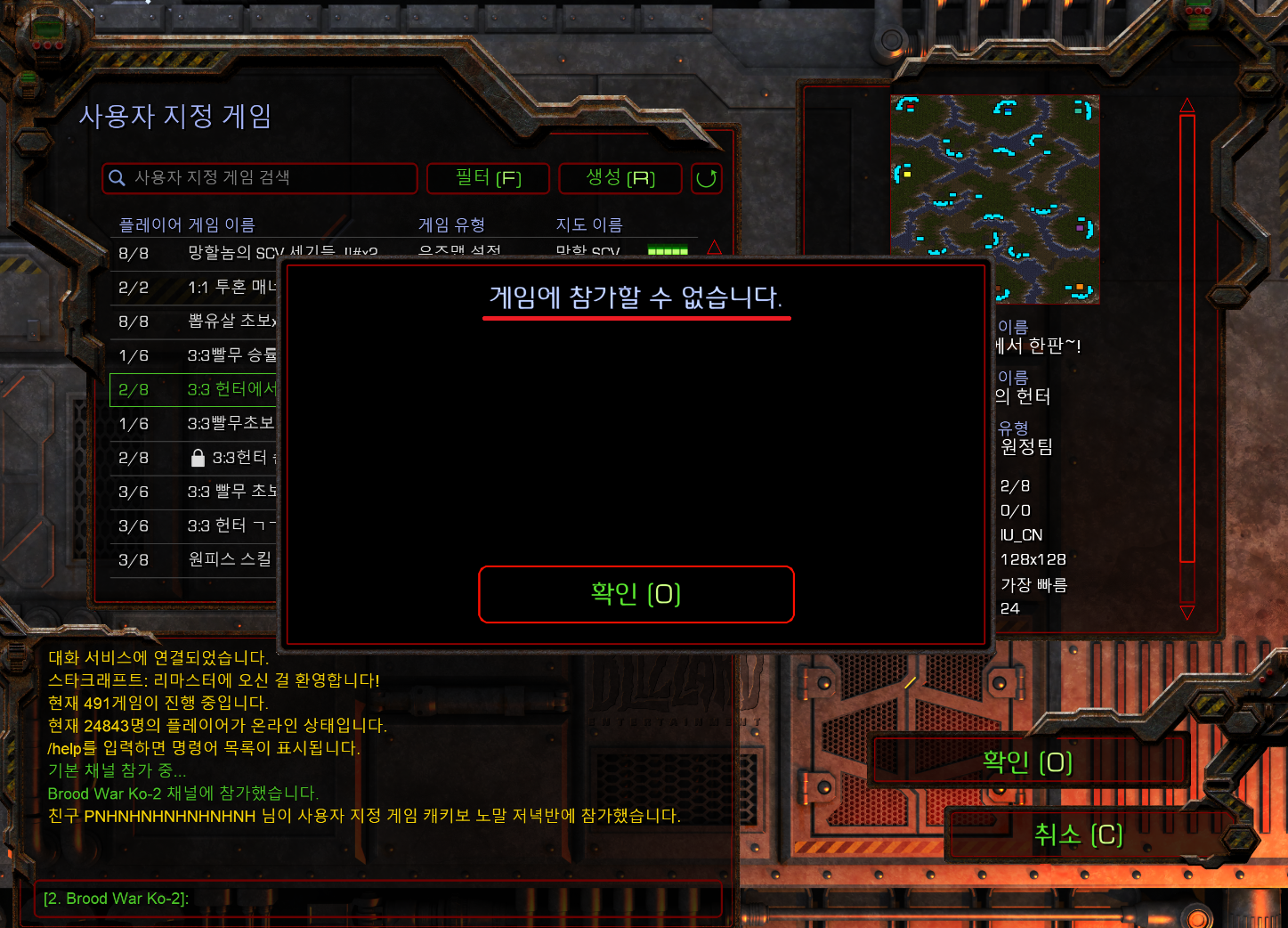 스타크래프트 리마스터에서 어떤 방을 들어가든 게임에 참가할 수 없습니다. 가 뜨고 내가 방을 파도 아무도 못 들어오는 문제가 있더라고요