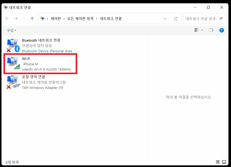 아이폰 핫스팟 테더링 연결 시 IPv6 로 통신하는 문제 해결을 위해 네트워크 어댑터에서 IPv6 비활성화 하기