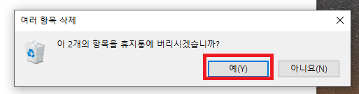 5. 삭제 확인 메시지가 뜨면 예를 눌러 삭제해줍시다.