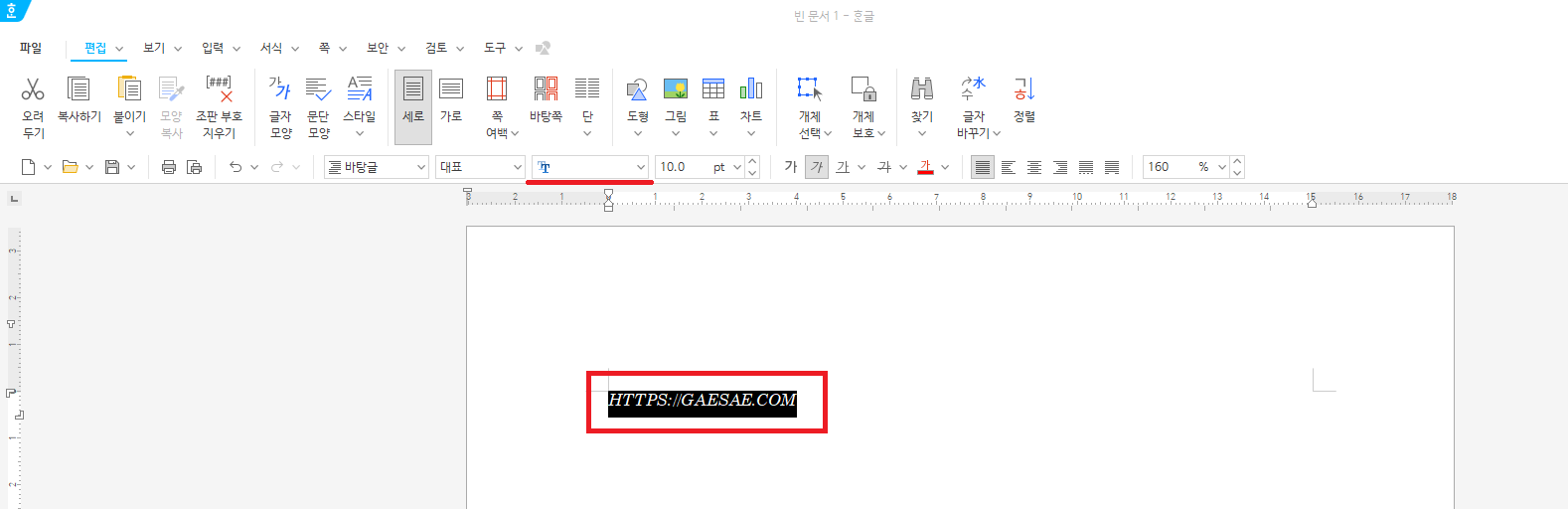 1. 폰트 옆에 대표를 클릭해줍시다.