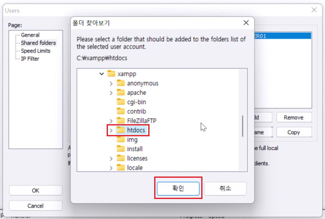 17. C:\xampp\htdocs 폴더가 보이시면 htdocs를 선택하고