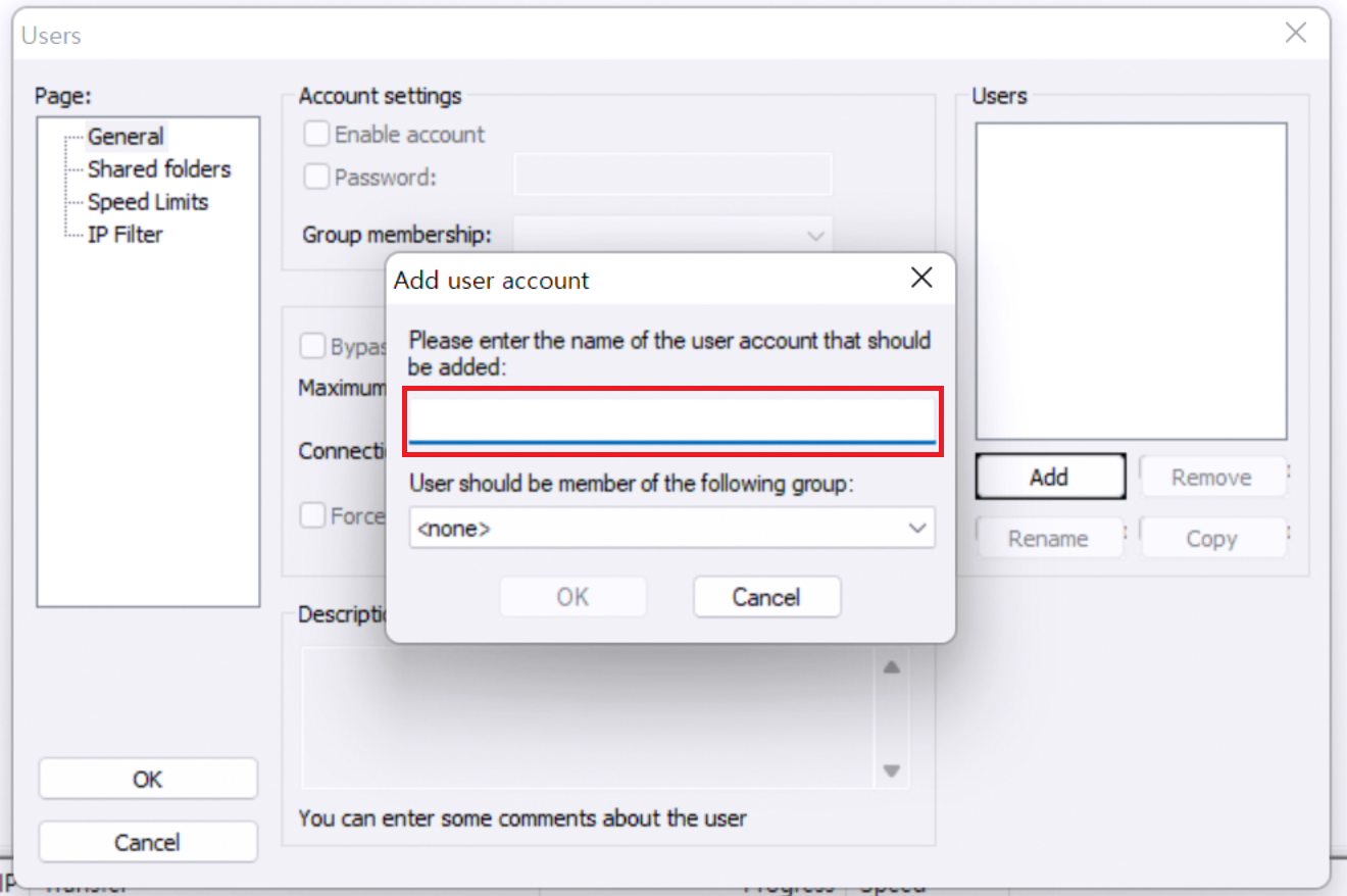 사용자명은 아까 만든 FTP 사용자명을