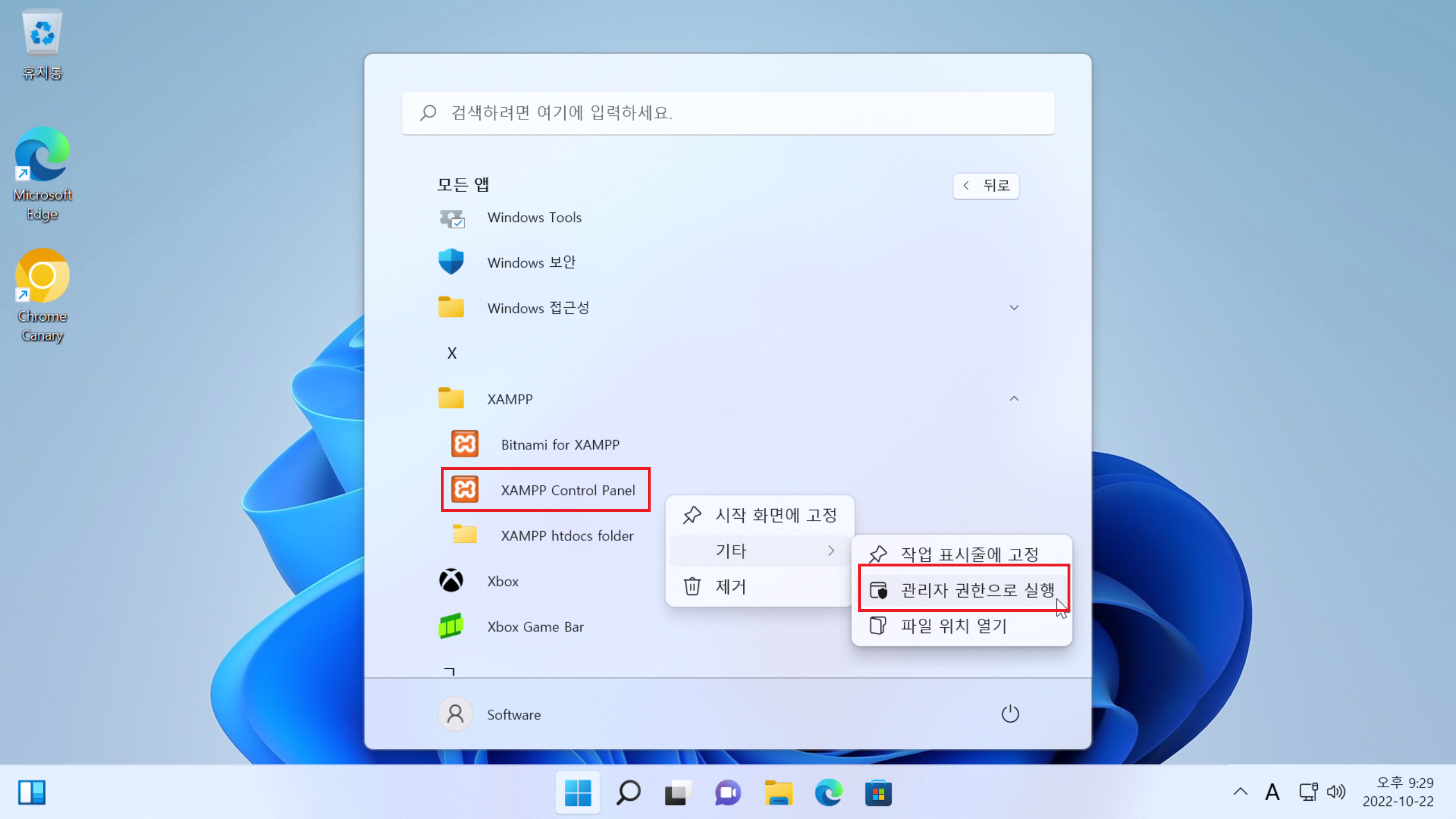 1. XAMPP Control Panel을 관리자 권한으로 실행해줍시다.