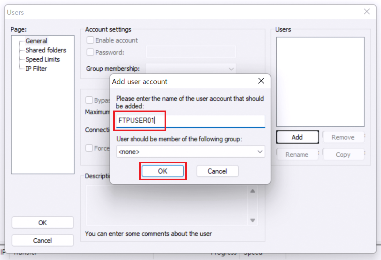 9. 저는 FTPUSER01이라는 명칭으로 계정을 만들겠습니다.