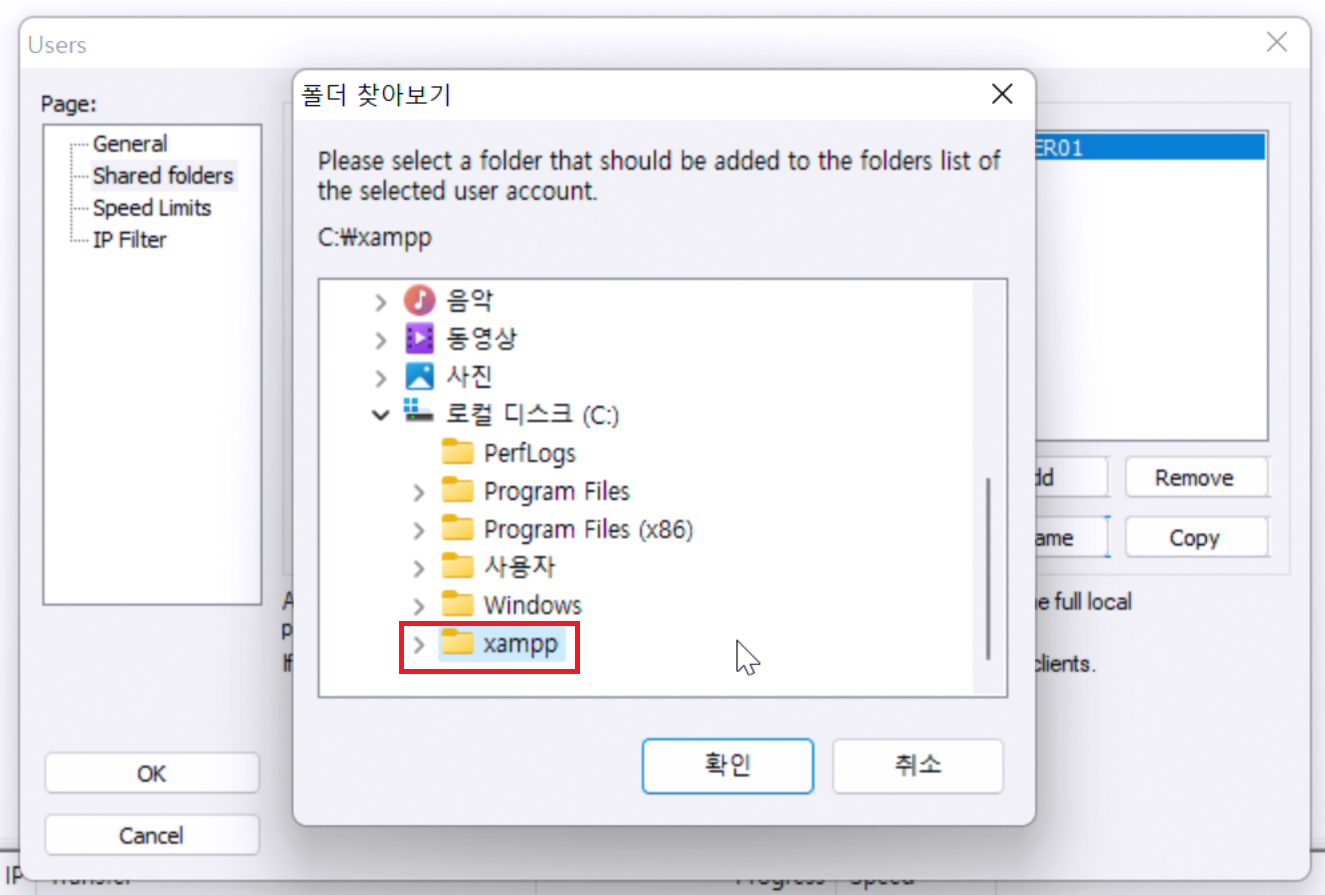 XAMPP로 설치한 파일질라 서버 FTP 계정을 추가해보자