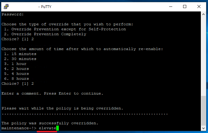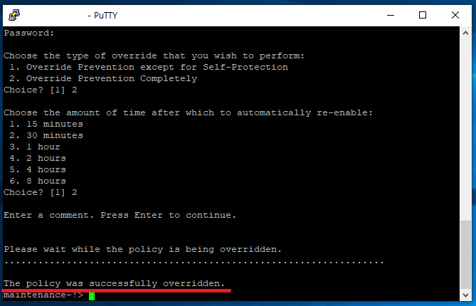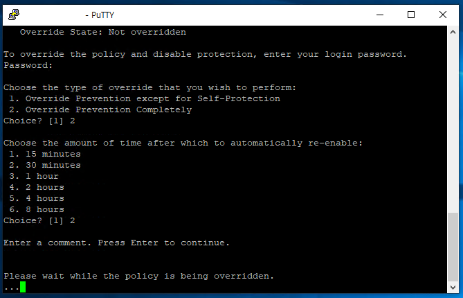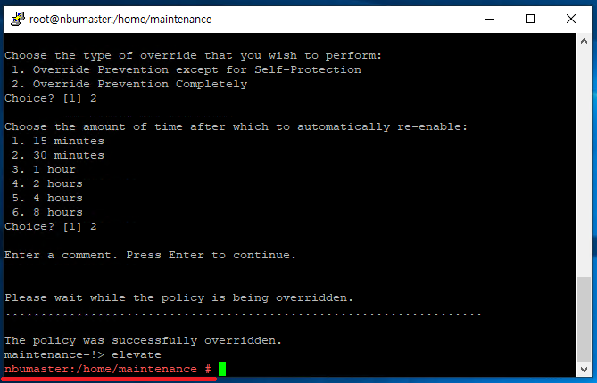 9. 여기서 우리는 Security Server Policy Override 를 잠시 비활성화 시키기 위해 관련 스크립트를 실행시켜줍시다.