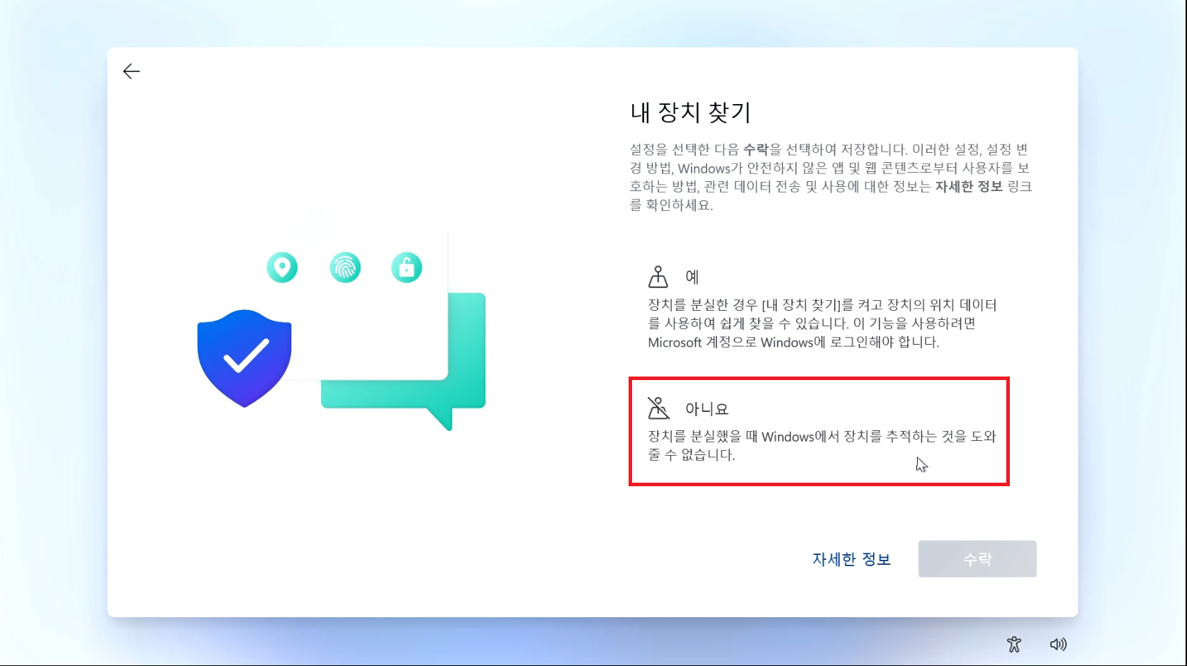 아니요를 눌러주세요.