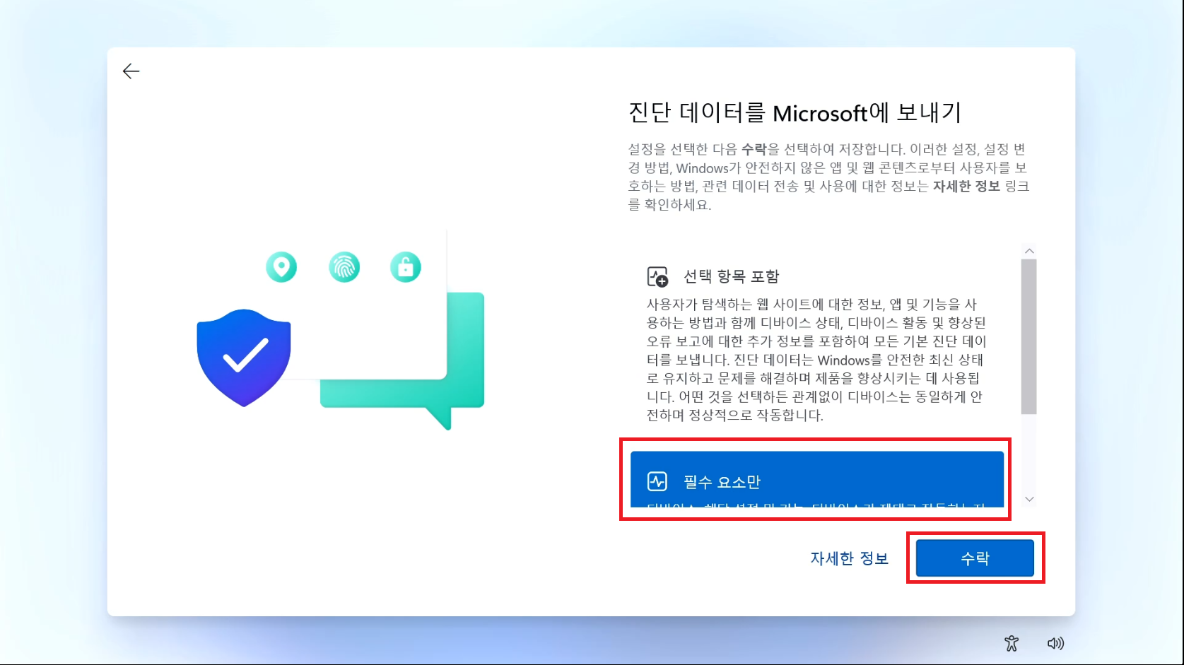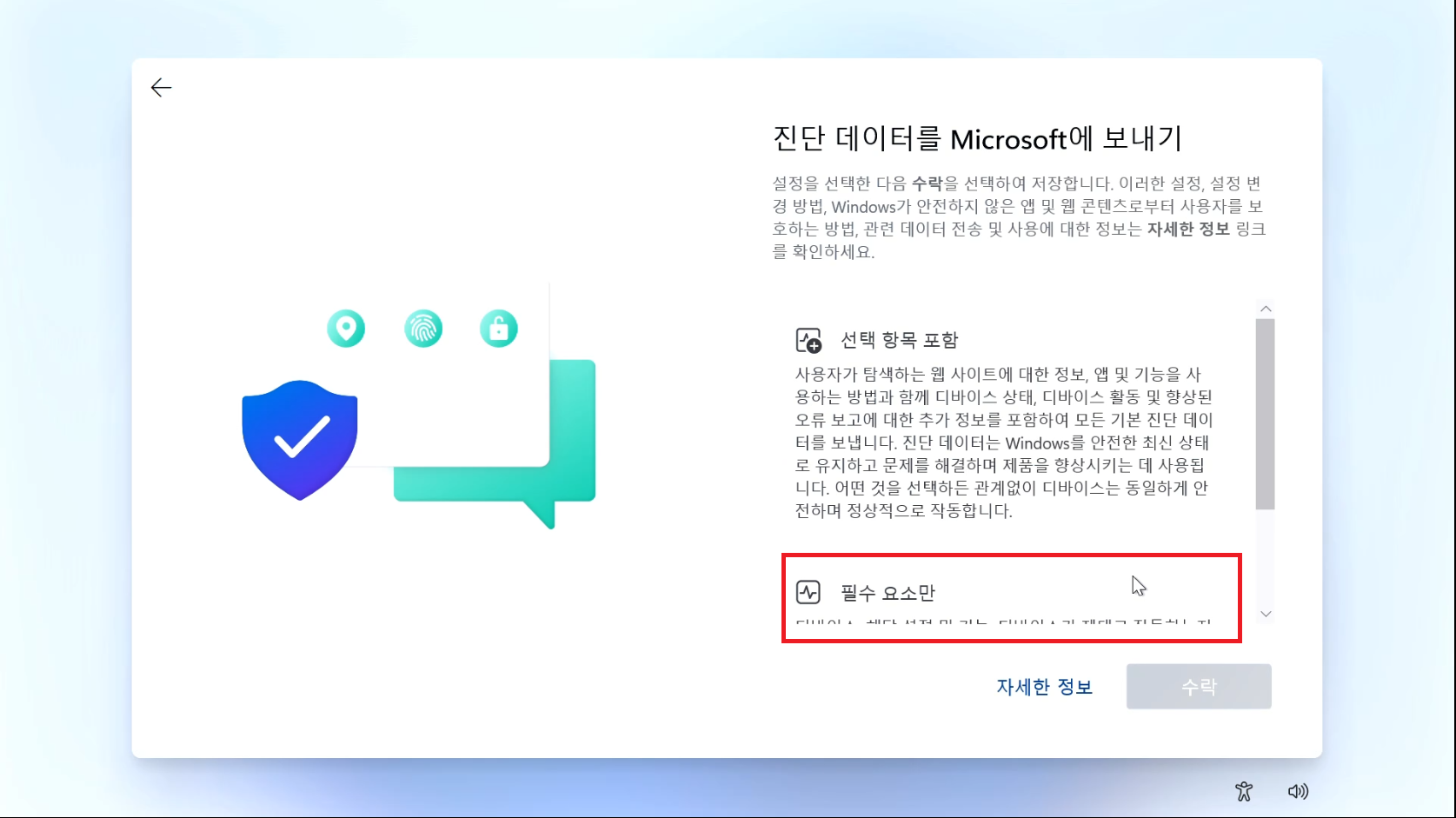 블루스크린과 같은 장애 데이터를 마이크로소프트로 전송할건지인데