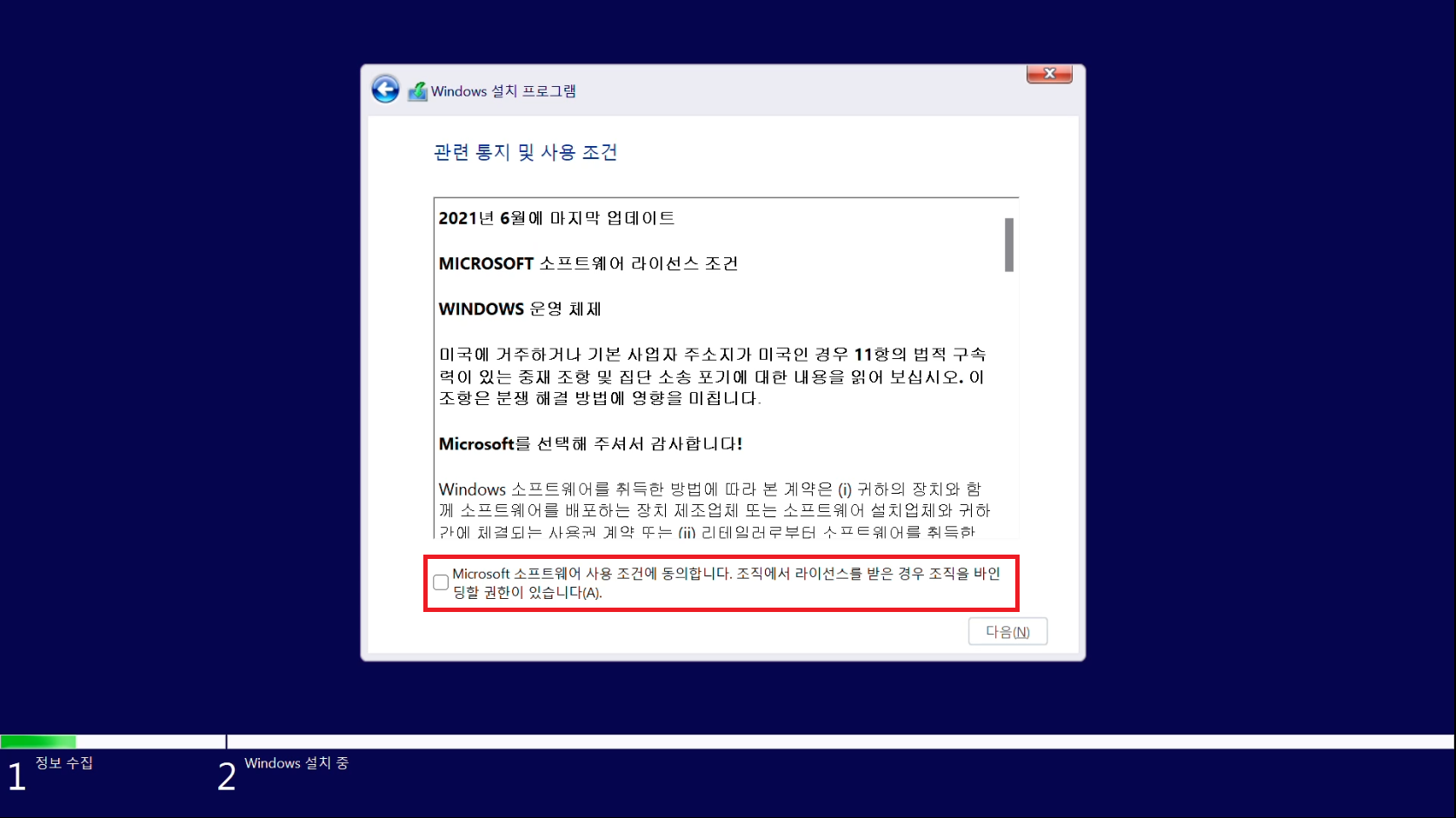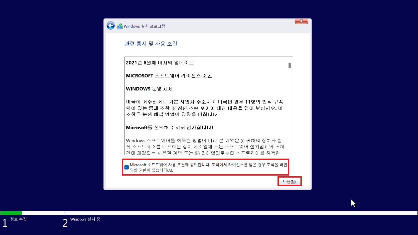 9. 동의에 체크하면 다음 버튼이 활성화 됩니다