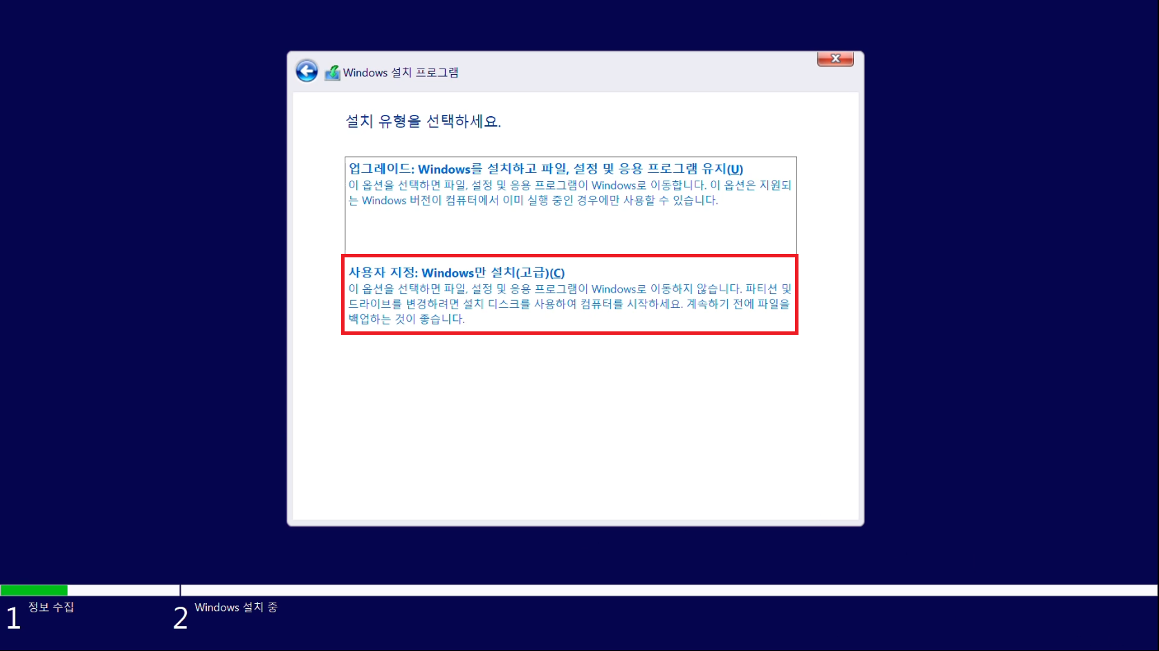 사용자 지정:Windows만 설치를 눌러줍시다