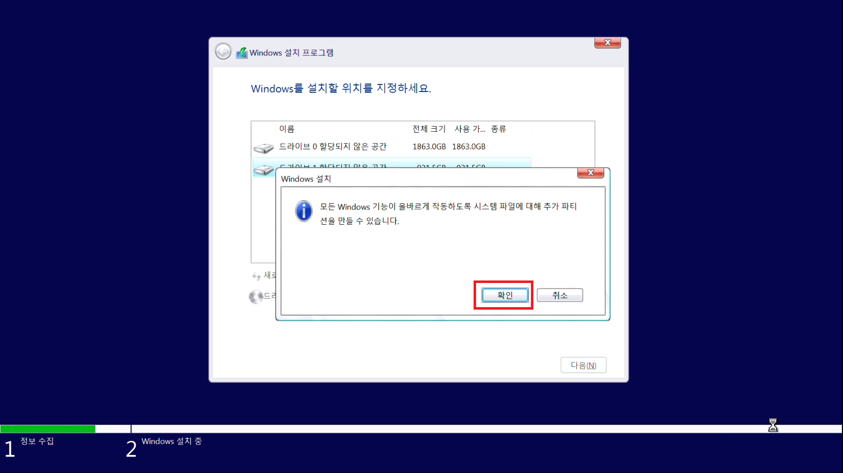나머지 셋팅은 윈도우가 알아서 진행하므로 잠시 기다려줍시다.