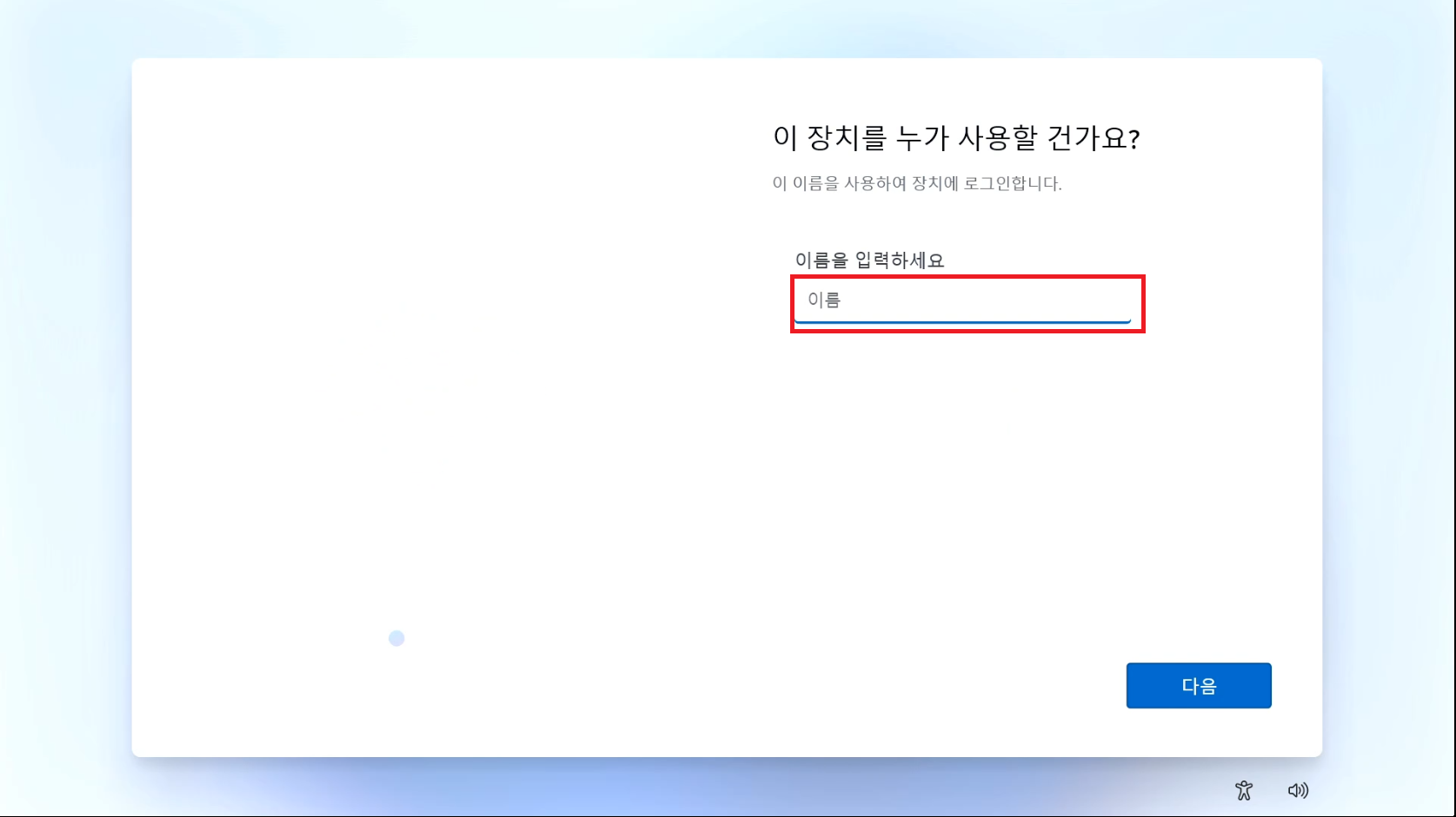 다시 시작하여 윈도우11 기본 설정을 진행해줍시다.