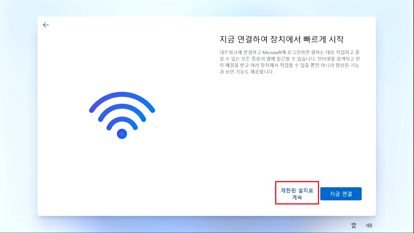 Windows11 설치가 모두 완료되신 후에 네트워크 선을 연결해주세요.\