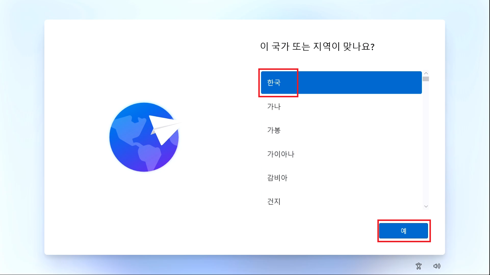 한국을 선택하시고 예를 눌러줍시다.
