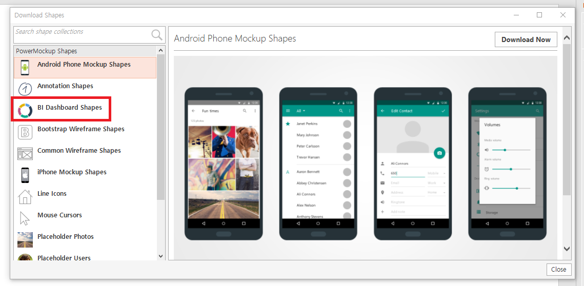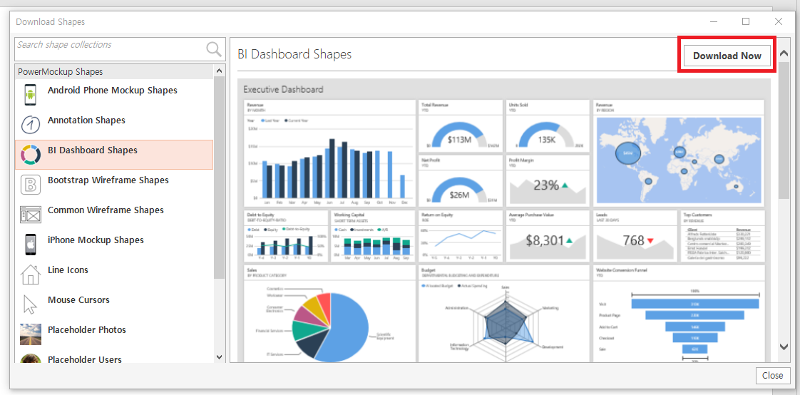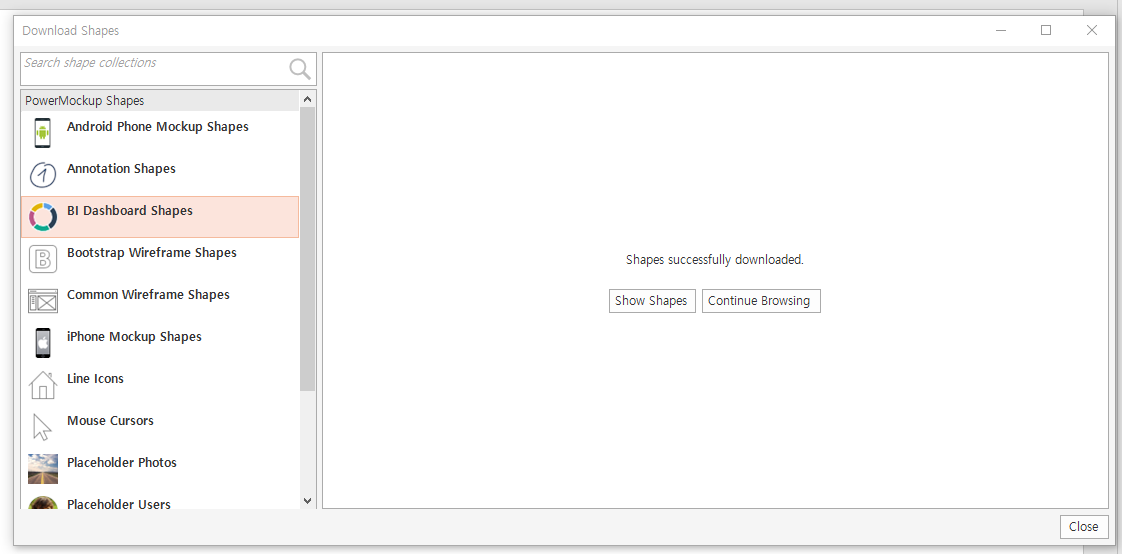 일단 테스트로 BI Dashboard Shapes를 다운로드 받아봅시다.