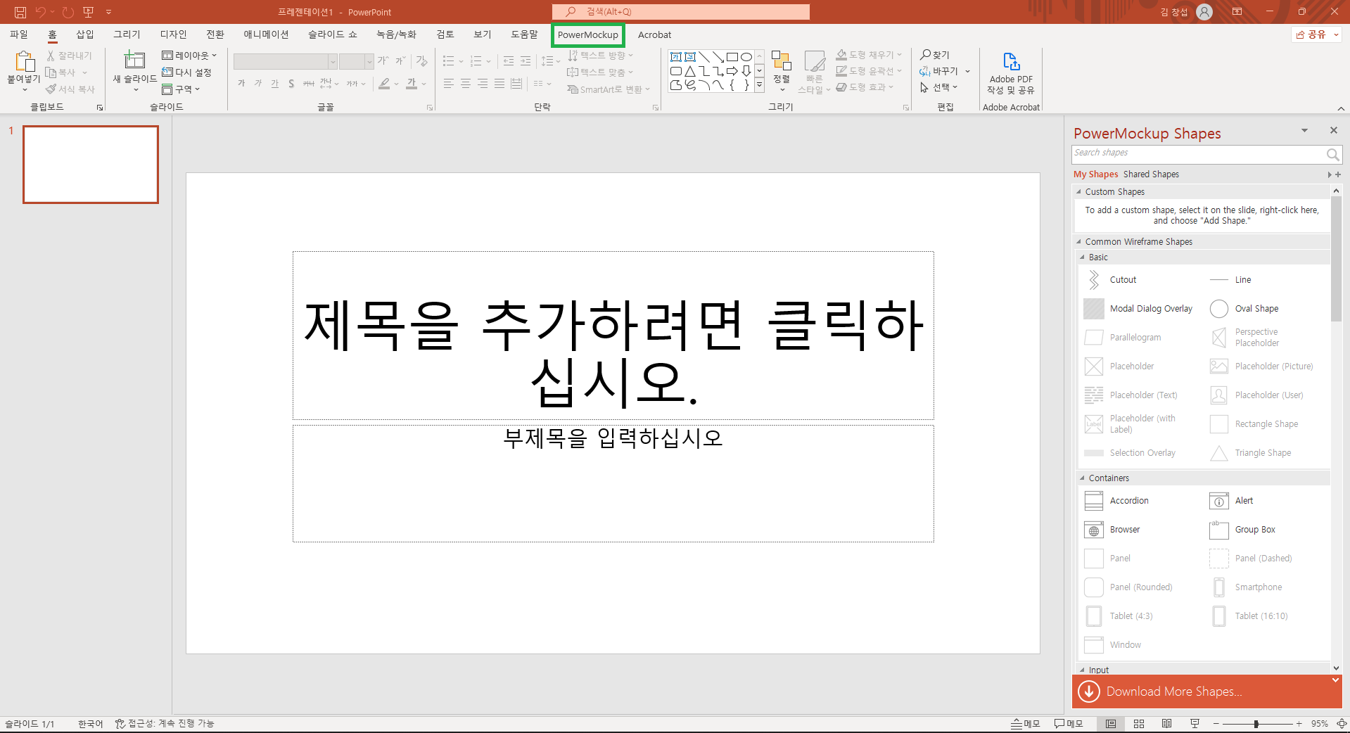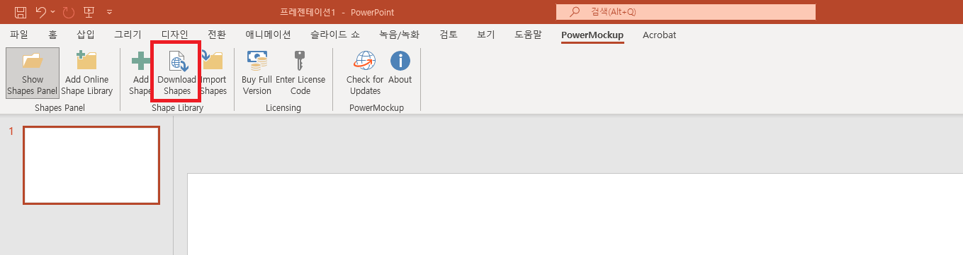 11. PowerPoint 상단 탭에 보시면 PowerMockup 메뉴가 생겼습니다.