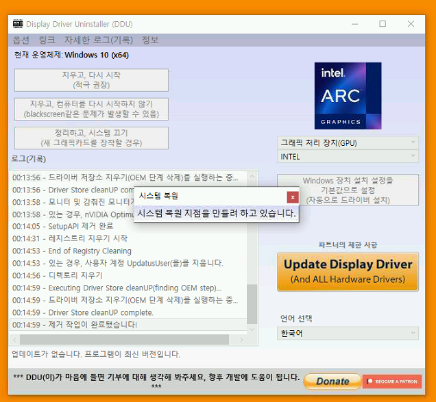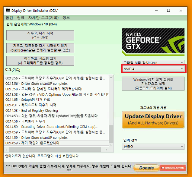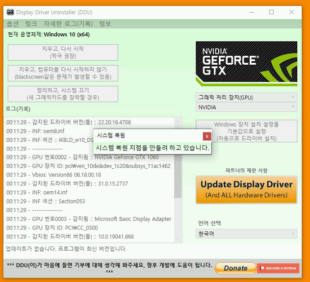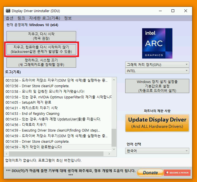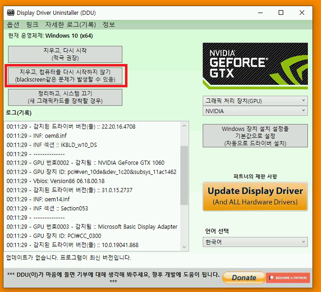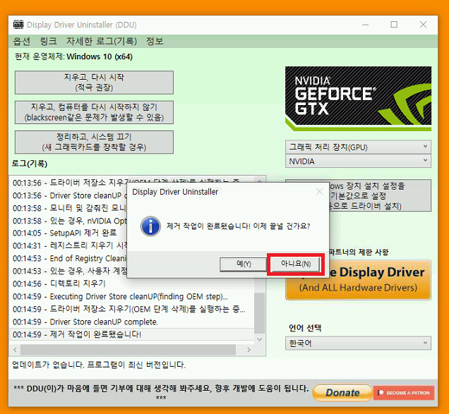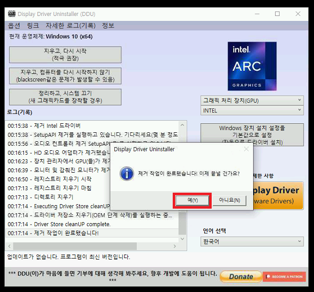 예를 누르고 DDU 종료한다음 컴퓨터를 재부팅해줍시다.
