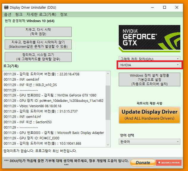 Display Driver Uninstaller (DDU)는 그래픽 드라이버를 깔끔하게 제거해주는 툴입니다.
