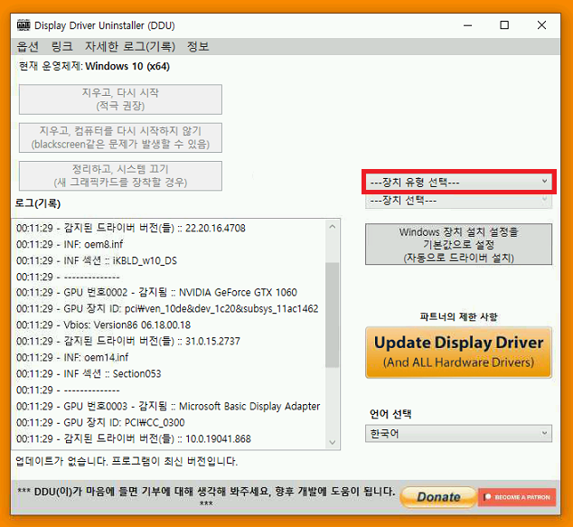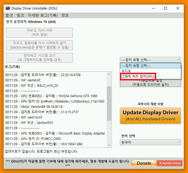 이 글에서 사용한 DDU 설치프로그램은 글 마지막에 첨부하였습니다.