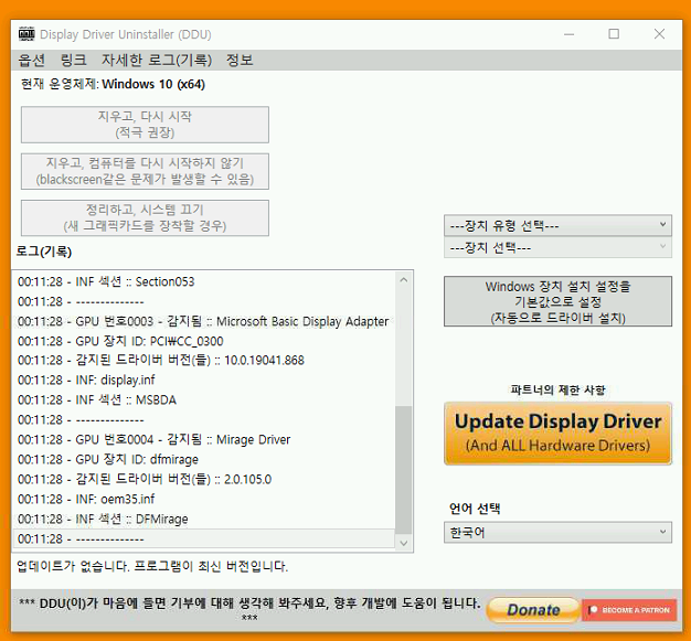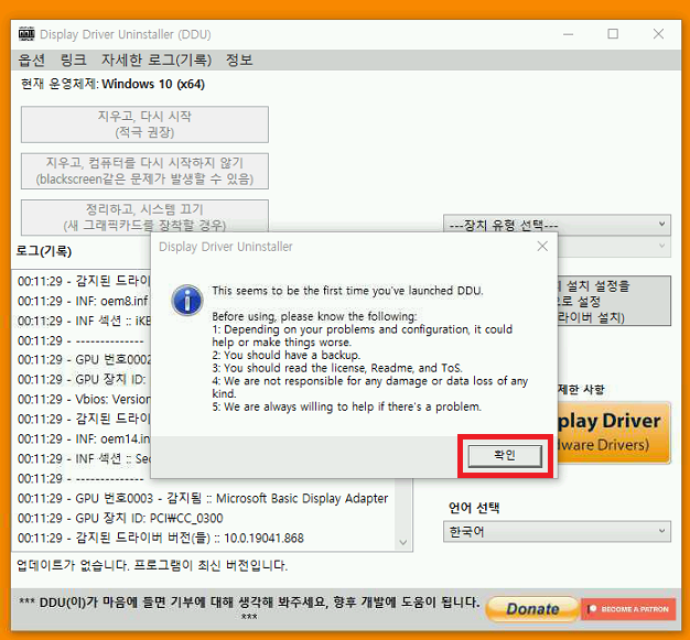 13. DDU가 실행되면 위와 같은 프로그램이 뜹니다.