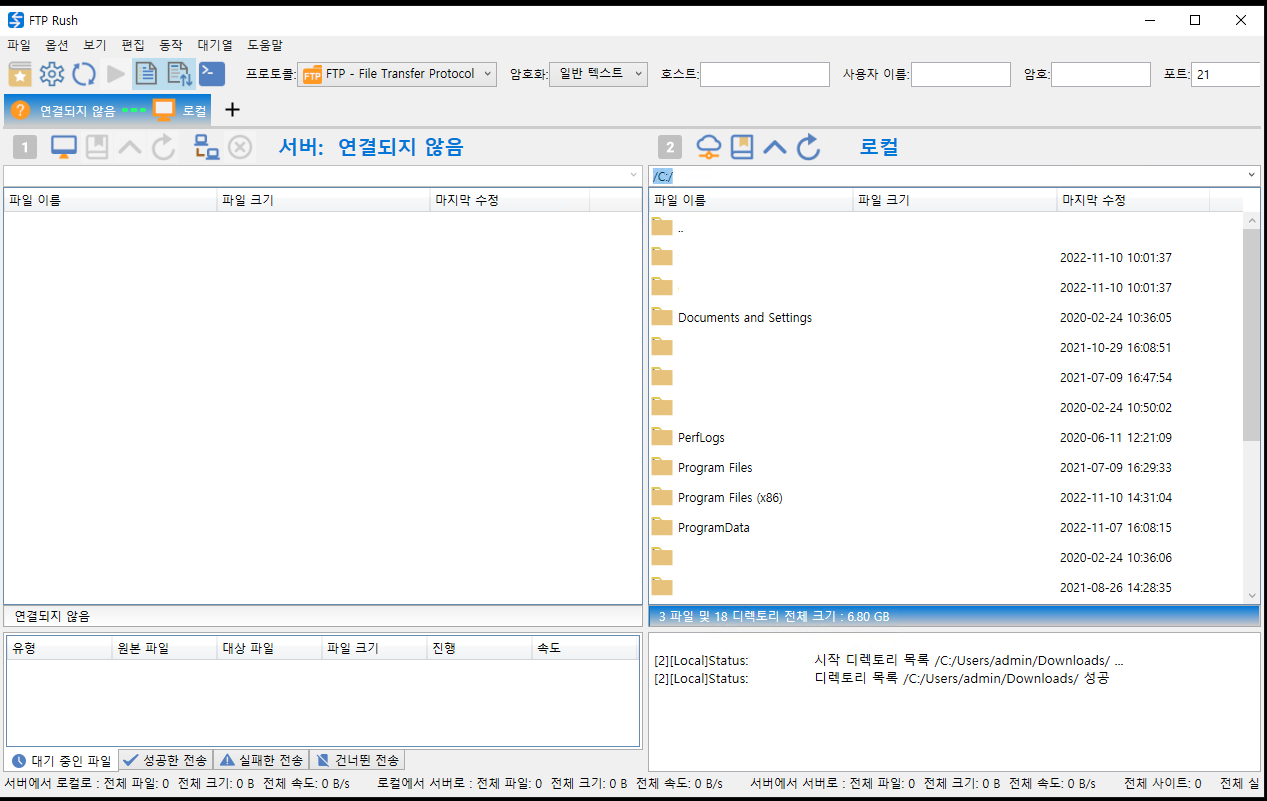 FTPRush는 파일질라와 동일한 기능을 하는 FTP 클라이언트입니다.
