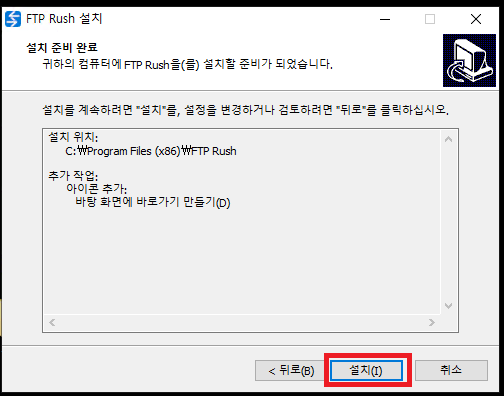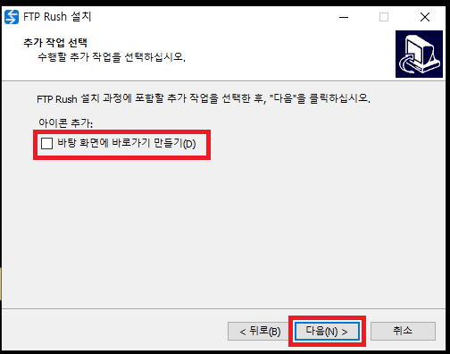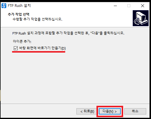 바탕화면에 FTPRush 바로가기 아이콘 생성하는 옵션 밖에 없기 때문에