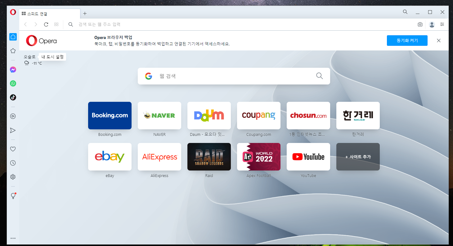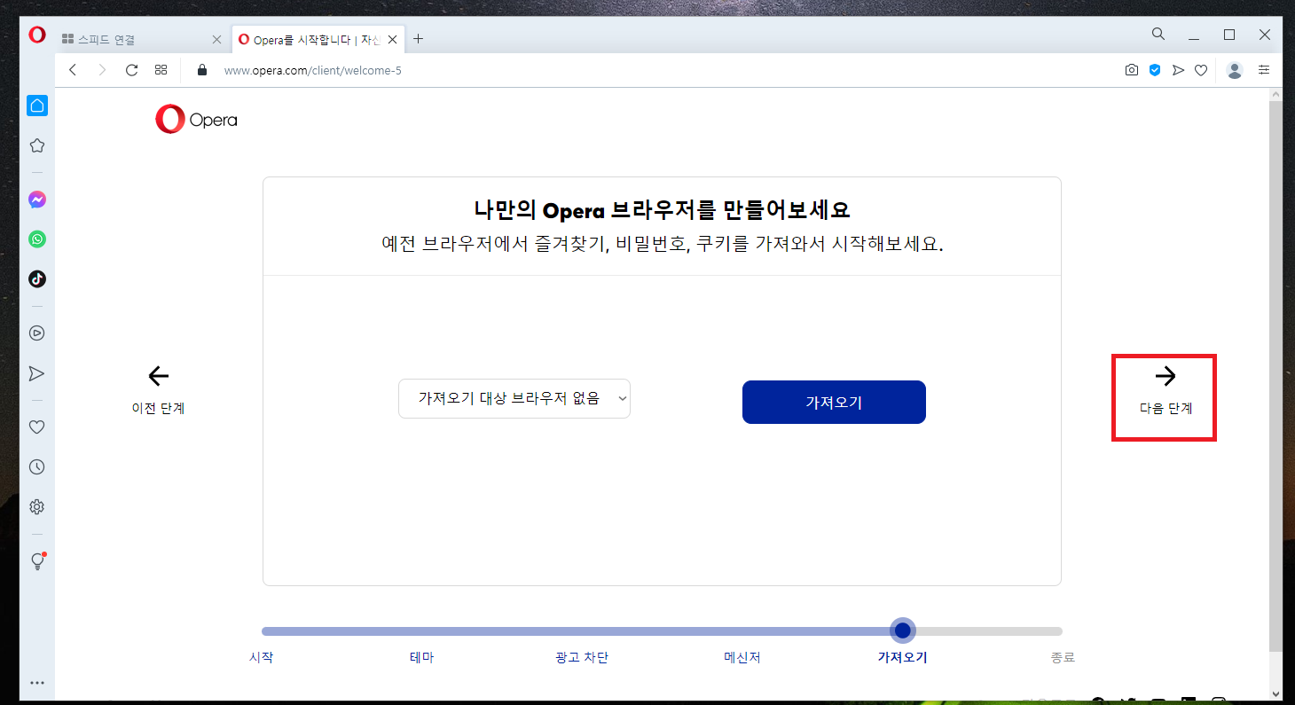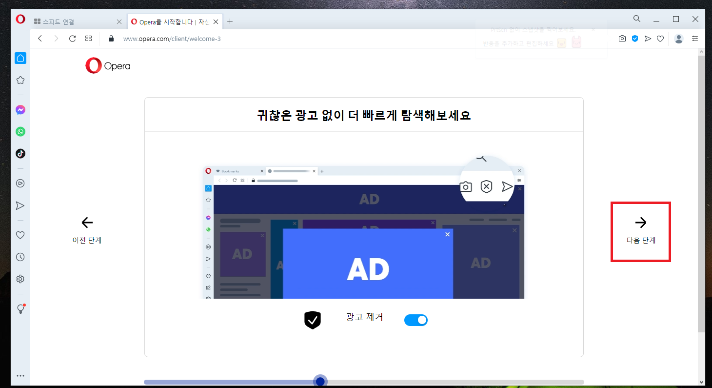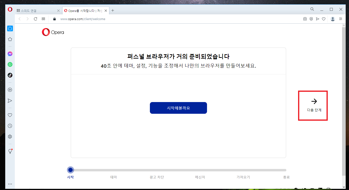 10. 오페라 브라우저를 최초 실행하면 위와 같은 화면이 뜨실 겁니다.