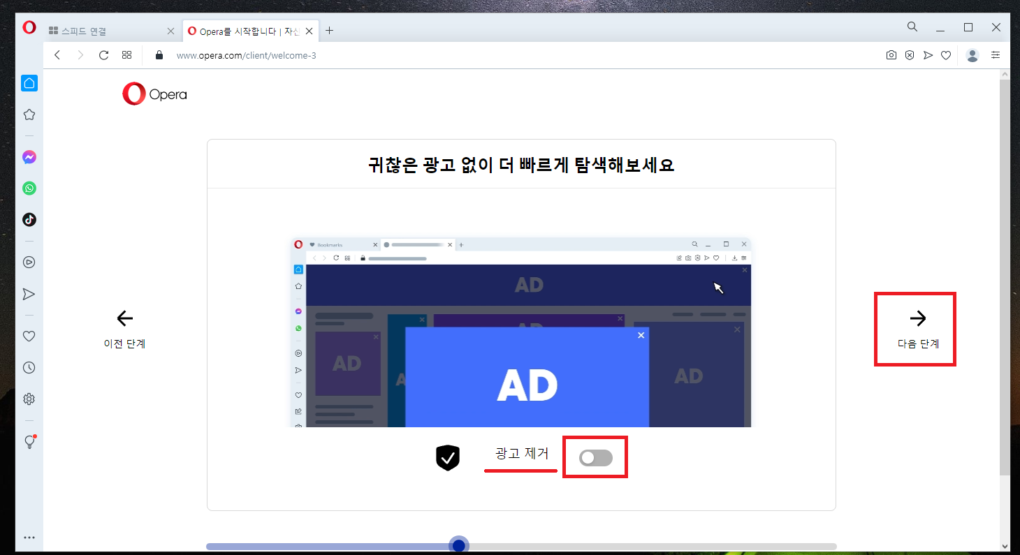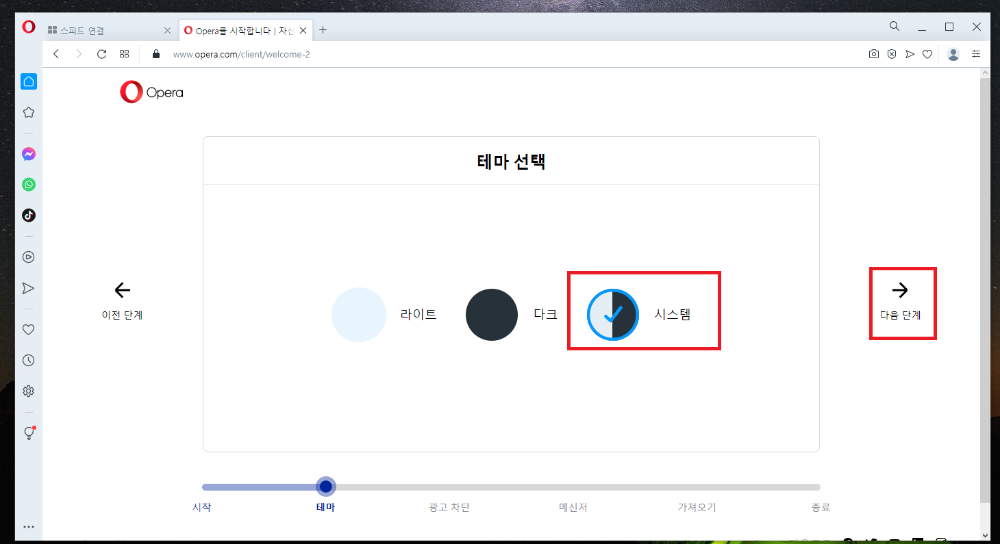 오페라 브라우저를 실행하여 기본 설정을 진행해줍시다.